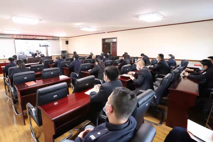 4月9日16时,大箐山县人民法院召开正风肃纪大会。会议由许柏刚院长主持并讲话,全院干警参加,朗乡法庭干警通过视频形式收看收听了会议。