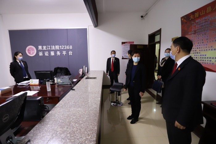 随后,李赟一行人来到大箐山县人民法院立案窗口,站在当事人的角度了解办事流程,体验群众办事能否跑明白、办明白。通过与办事群众及窗口工作人员进行交流,体验服务质量,体会群众办事的实际感受,从中发现影响窗口服务办事效率的问题,找出差距,针对提升服务,加快改进便民措施等方面提出指导性意见。