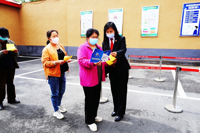 为了进一步提高群众防骗识骗能力,从源头上预防诈骗犯罪,减少人民群众财产损失,维护社会的和谐稳定。5月30日上午,大箐山县人民法院工作人员来到县疾控中心核酸采样点,充分利用核酸检测全民参与、宣传面广的优势,借用排队时的“1米线”做文章,开展防范“电信诈骗”、“非法集资诈骗”、“养老诈骗”集中宣传活动。