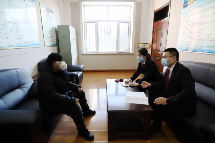 “过年好,请问有什么可以帮您?”,在诉讼服务中心,工作人员热情接待诉讼当事人,耐心细致地解答当事人提出的法律疑问,审查材料、立案登记等各项工作有序进行。