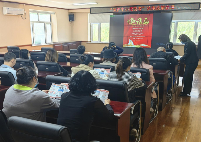为依法保护中小投资者合法权益,维护投资者的财产安全,大箐山县人民法院于5月23日14时30分举办普法宣讲、宣传活动,并通过公众号邀请辖区内中小投资者。此次活动共有17家企业代表及市场主体闻讯赴邀参加。