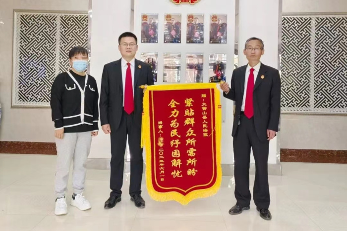 近日,当事人关女士将印有“紧贴群众所需所盼,全力为民纾困解忧”的锦旗送到了大箐山县人民法院,对县法院使用互联网公告送达带来的司法便利表示感谢。此次送达是县法院首例互联网公告送达,宣告县法院正式进入送达“E”时代。