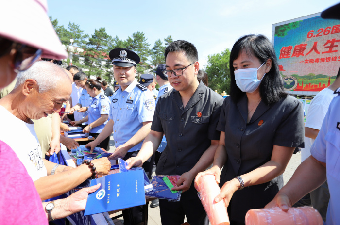 为进一步加大禁毒宣传教育力度,提高群众拒毒、防毒意识。6月26日上午,大箐山县人民法院与县检察院、公安局等多家单位共同开展了“6·26国际禁毒日”普法宣传活动。