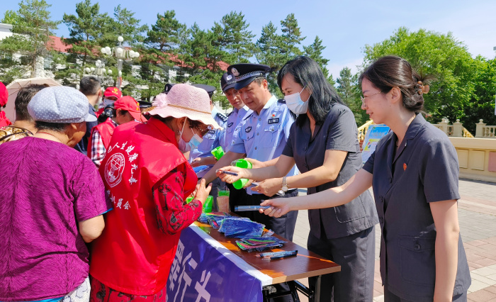 干警们通过设立宣传台,摆放宣传展板,发放印有禁毒标语的笔记本、手袋、中性笔等方式向群众宣传讲解禁毒知识,介绍新型毒品的种类、形状、特性,帮助群众识别新型毒品,用真实的典型案例告诉群众毒品对社会、家庭、个人所造成的严重危害,呼吁大家将禁毒知识带回家,告诉身边的家人朋友,远离毒品危害,珍惜幸福家庭。同时,干警们针对群众咨询的法律问题逐一进行了耐心解答。此次宣传活动共计发放宣传单1000余份,接受群众法律咨询100余人次,发放纪念品300余份。
