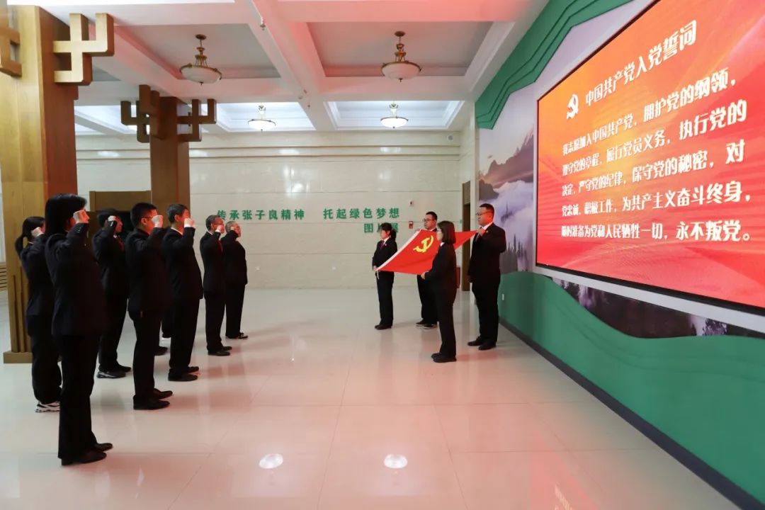 参观结束后,全体党员面向党旗肃穆而立,高举右拳,怀着无比崇敬的心情重温入党誓词。