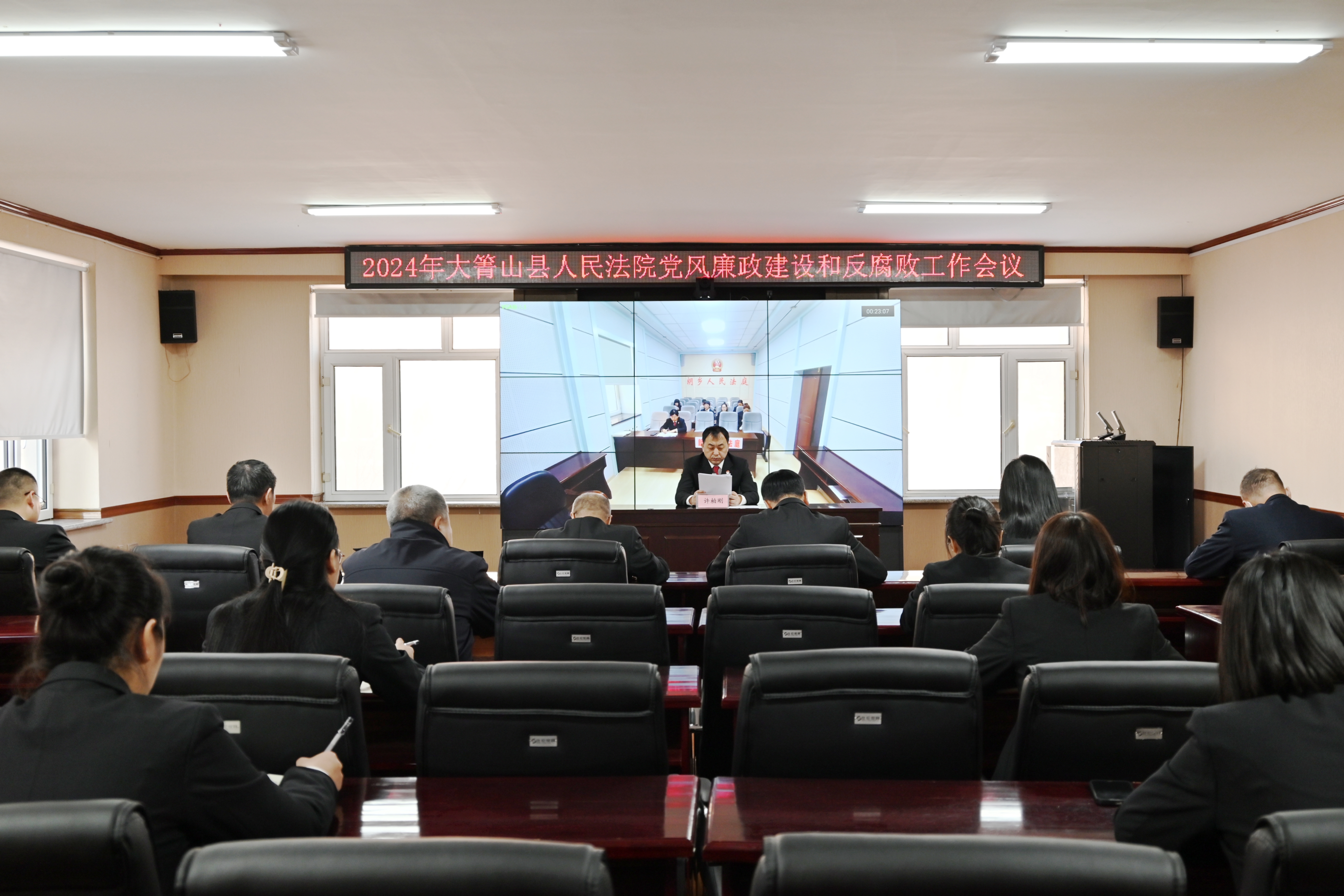 3月11日,大箐山县人民法院召开2024年党风廉政建设和反腐败工作会议,党组书记、院长许柏刚主持会议并讲话,全体干警参加会议。