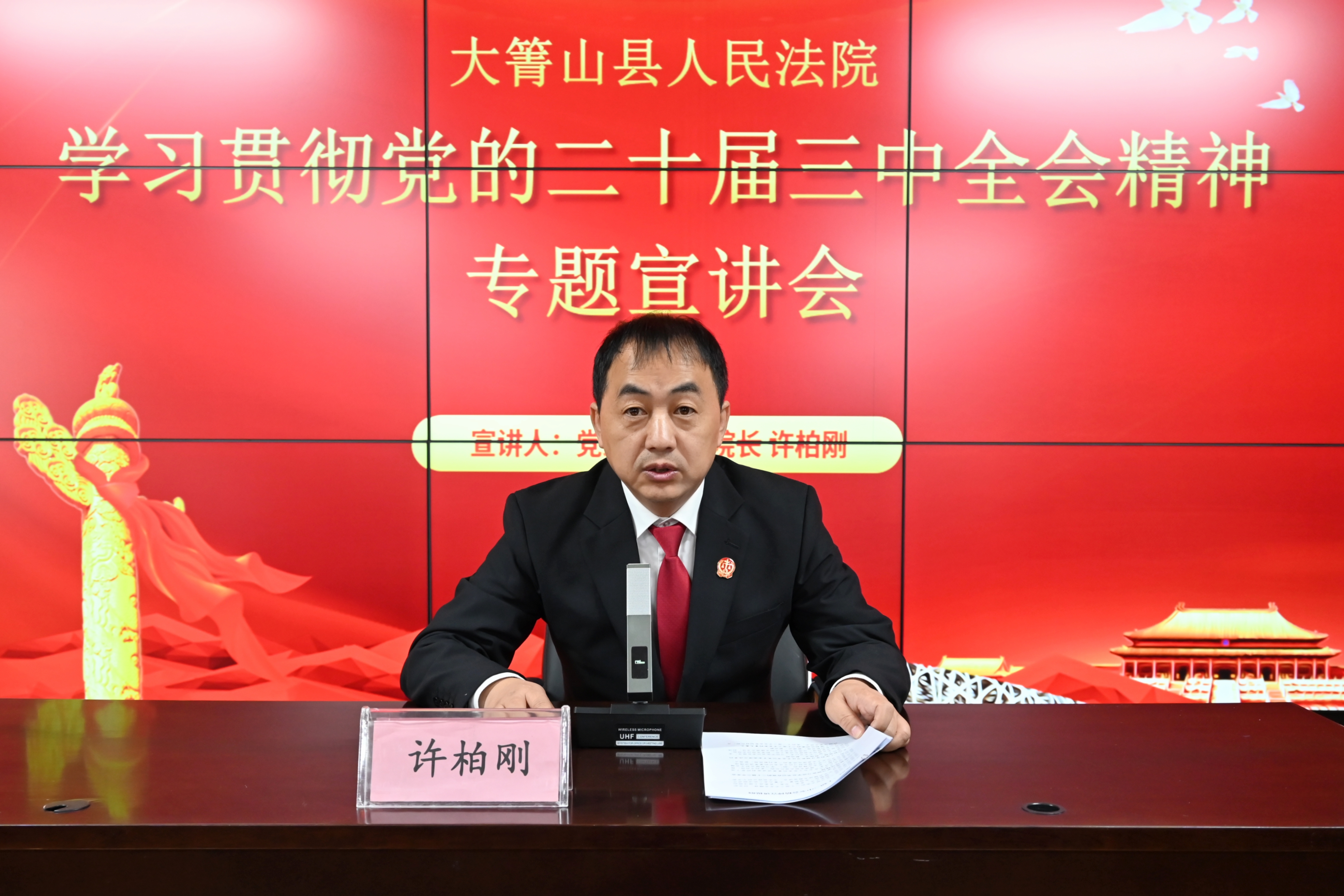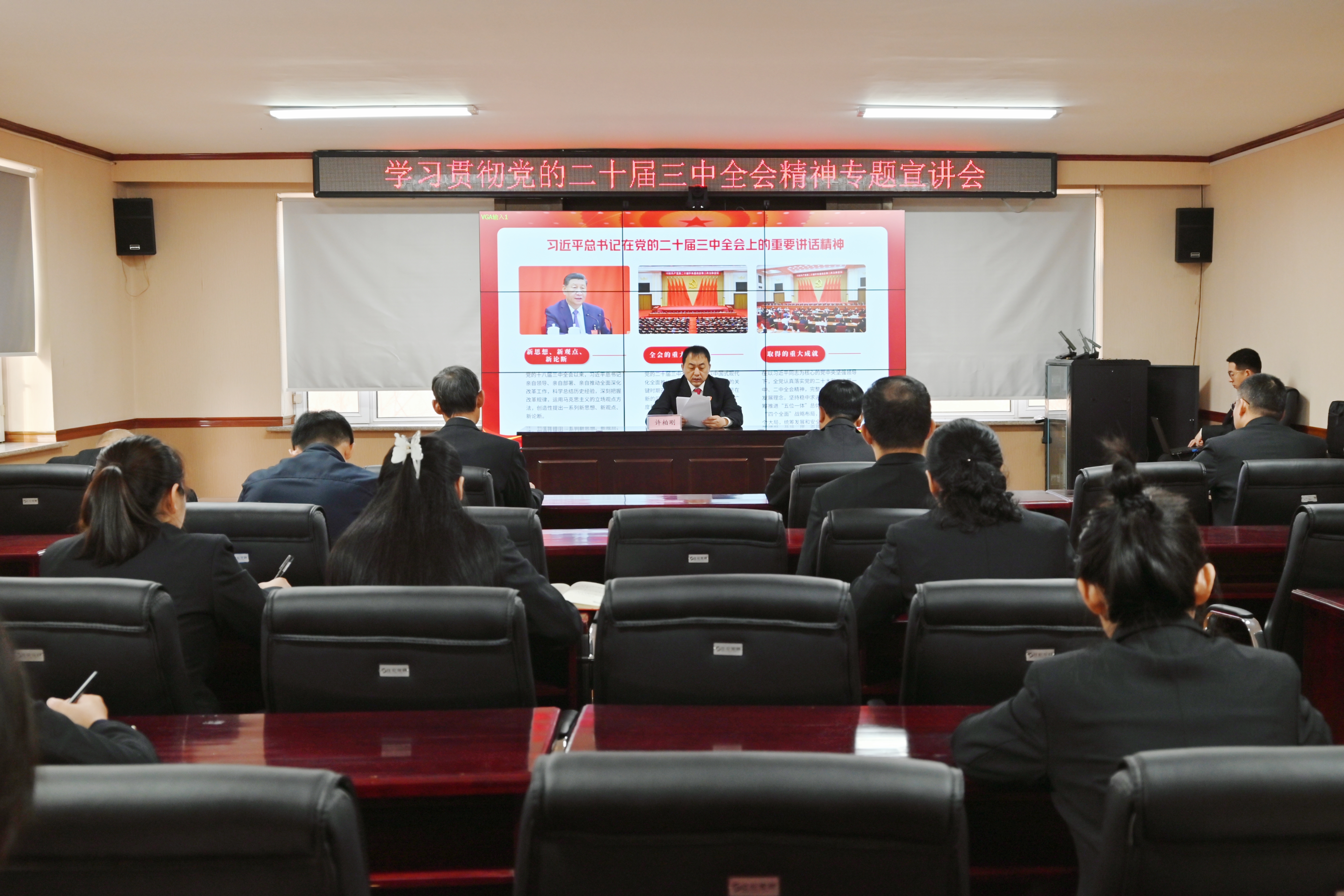 10月25日,大箐山县人民法院召开学习贯彻党的二十届三中全会精神专题宣讲会,党组书记、院长许柏刚作专题宣讲,全体干警参加会议。