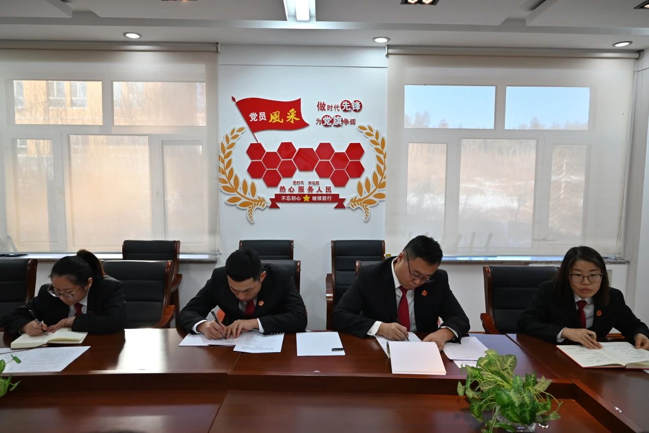 会议要求:一要提高政治站位,增强责任意识。持续加强政治理论学习,要讲政治、守规矩。在贯彻执行院党组各项决策部署上,不打折扣、不搞变通。不断强化责任意识,全面提升工作执行力和为民服务能力。二要勇于担当作为,提升执行质效。全体干警要绷紧“攻坚”的弦,筑牢一盘棋的协作意识,深入研判执行工作和执行案件的难点、风险点,明确执行目标,加大查人找物力度,规范执行,进一步提升执行质效。三要强化廉洁意识,坚守纪律底线。抓实作风建设,持之以恒拧紧廉洁思想总开关,不断提升自身素质,切实履行工作职责,严守纪律底线红线,为维护当事人合法权益持续发力。