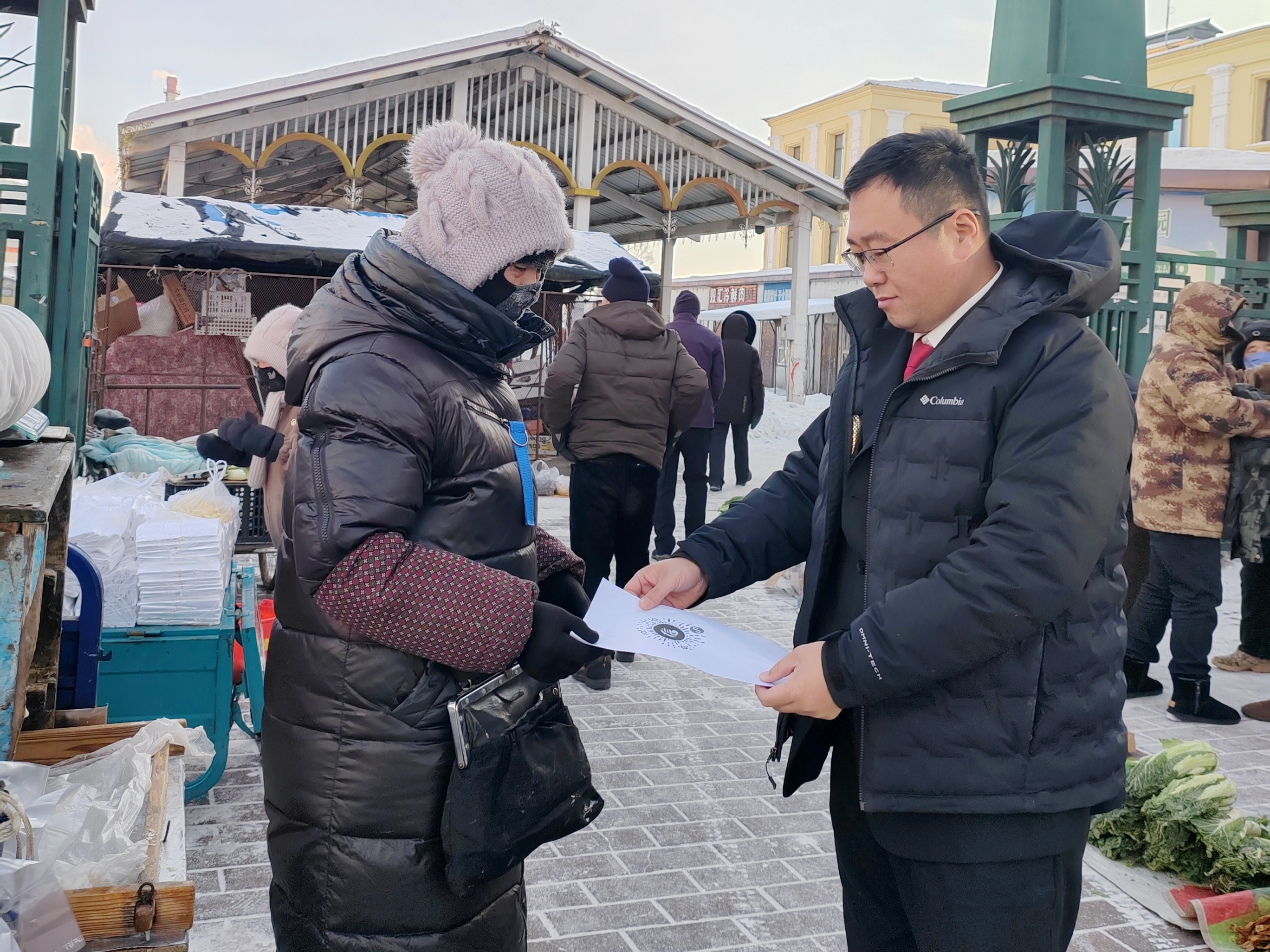 1月2日,大箐山县人民法院工作人员走进农贸市场,向市场主体和来往群众进行“码上诚信+市场”讲解宣传,并指导市场主体注册“码上诚信”二维码,倡导经营者亮码经营。引导群众通过现场扫描二维码,了解查看市场主体经营者的基本信息、信用信息、主动承诺信息等,为消费者提供了“随时查、随地查”途径,激励更多市场主体诚信经营、文明服务。