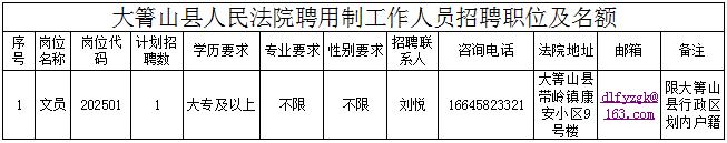 因工作需要,大箐山县人民法院面向社会公开招聘聘用制文员1名。现将有关事项公告如下: