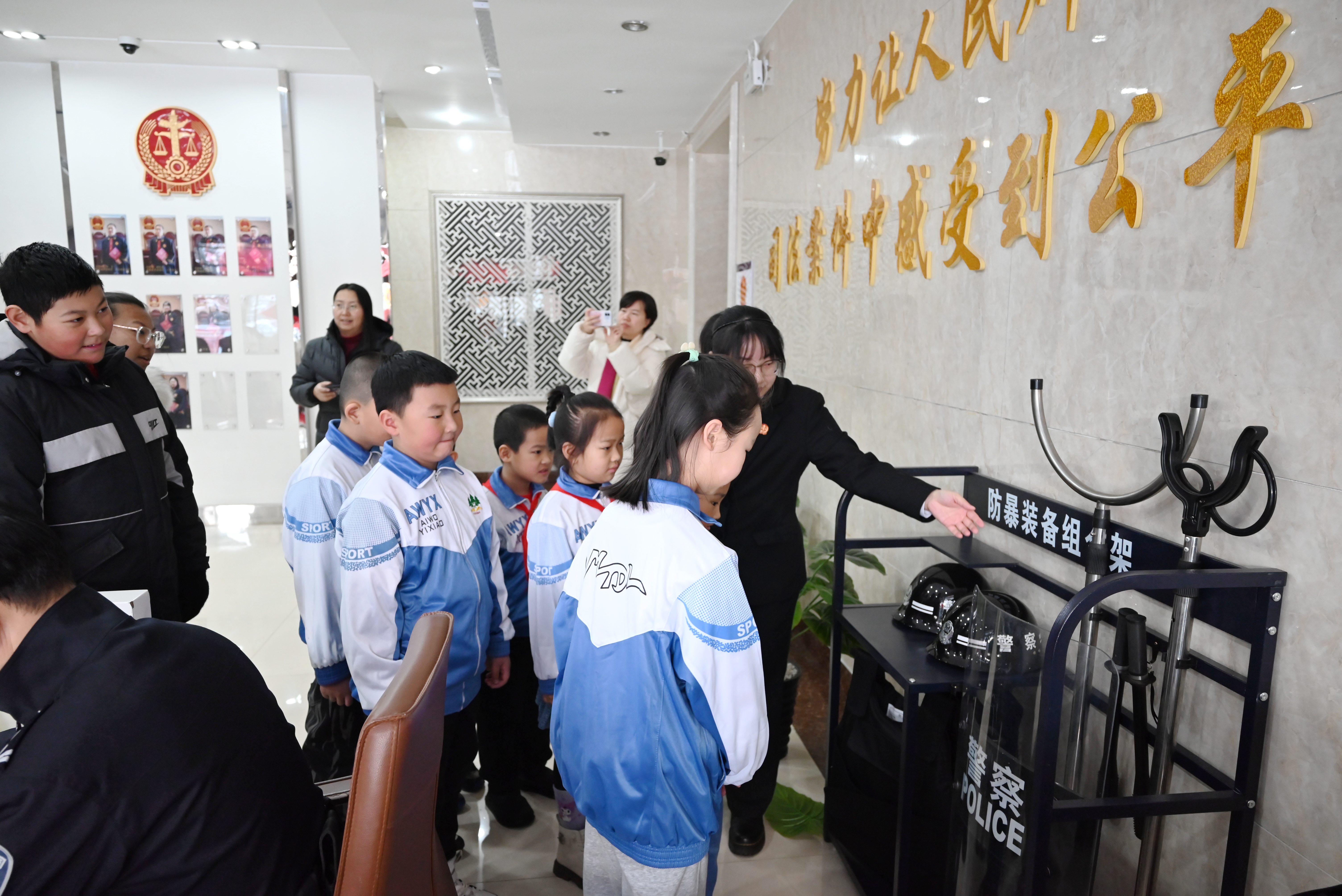在讲解员的引领下,同学们先后参观了诉讼服务中心、多功能审判庭、羁押室、执行指挥中心、法院荣誉室等场所,直观感受和体验到法院的工作日常及多样化的便民服务举措。