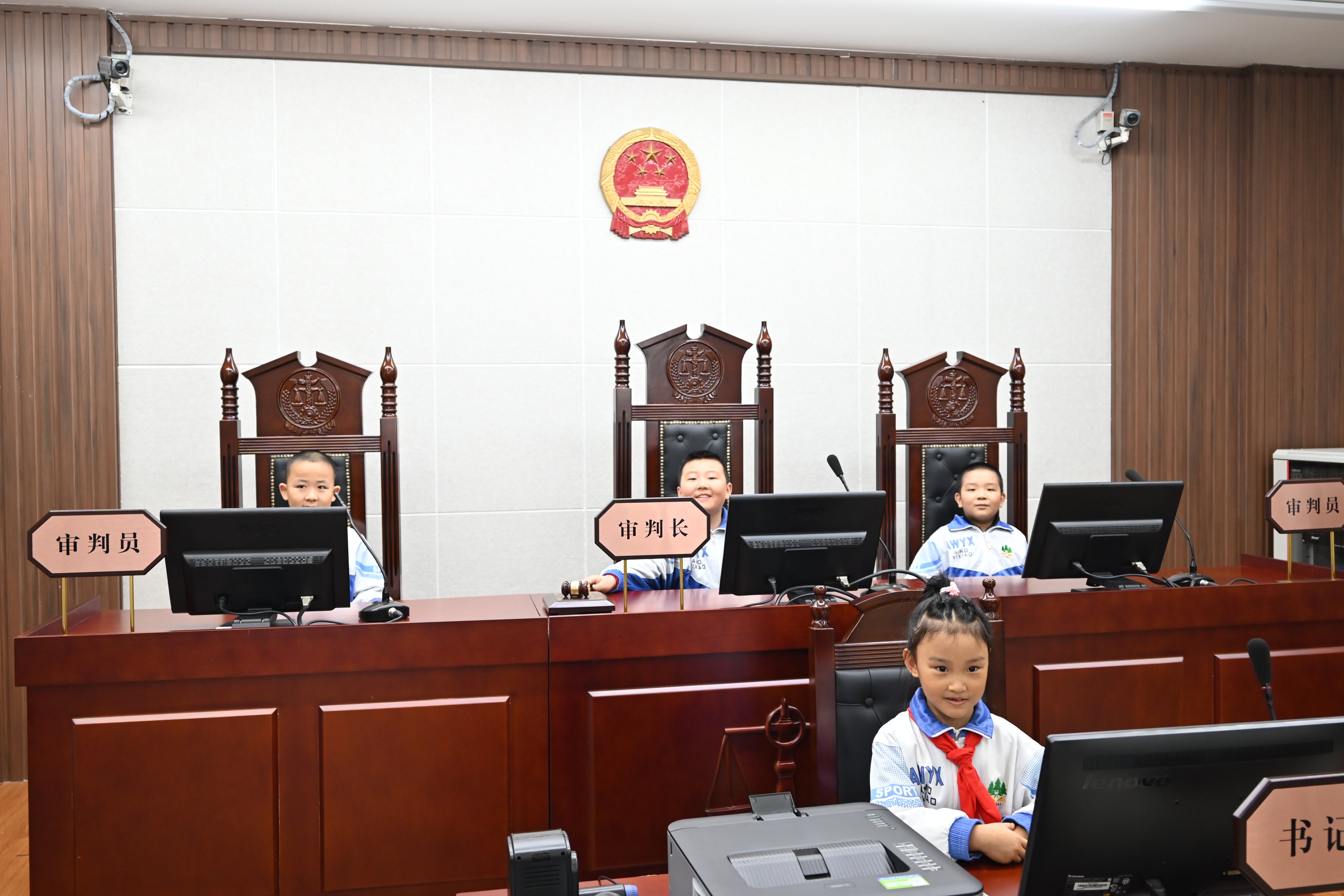 其中,最吸引人的环节,就是参观审判庭了。在简单了解法庭布局和审判流程后,同学们迫不及待地坐上审判席、公诉人席、辩护人席,扮演起了不同的角色。当“审判长”敲响法槌的那一刻,清脆的声音回荡在庄严肃穆的审判庭,也唤醒了学生们心中的法治信仰。