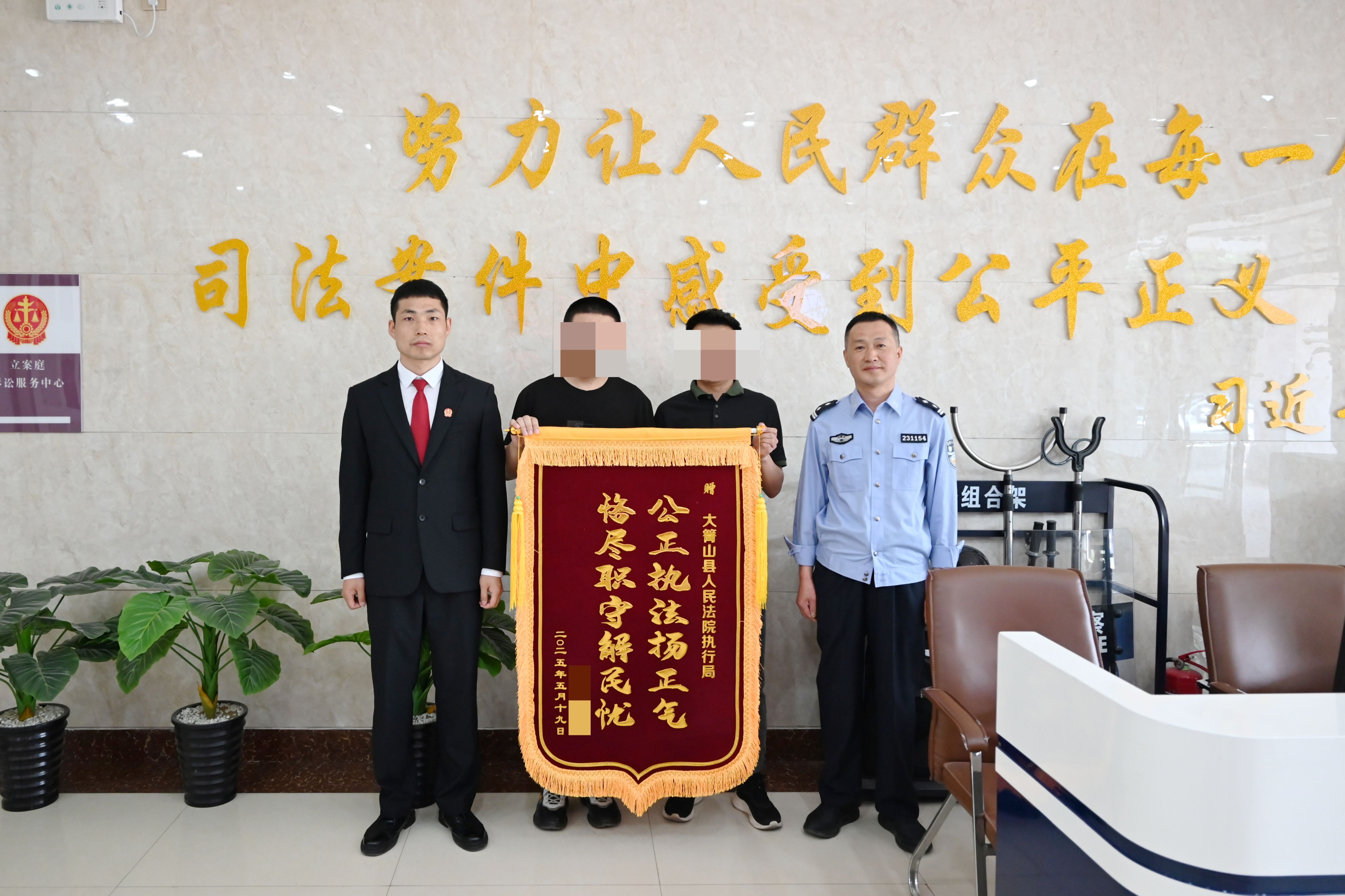 “感谢法院为我们拿回了血汗钱!”5月30日,申请人将一面锦旗送到大箐山县人民法院执行干警手中,鲜红的锦旗上,凝结着群众对司法公正的信任与感激。