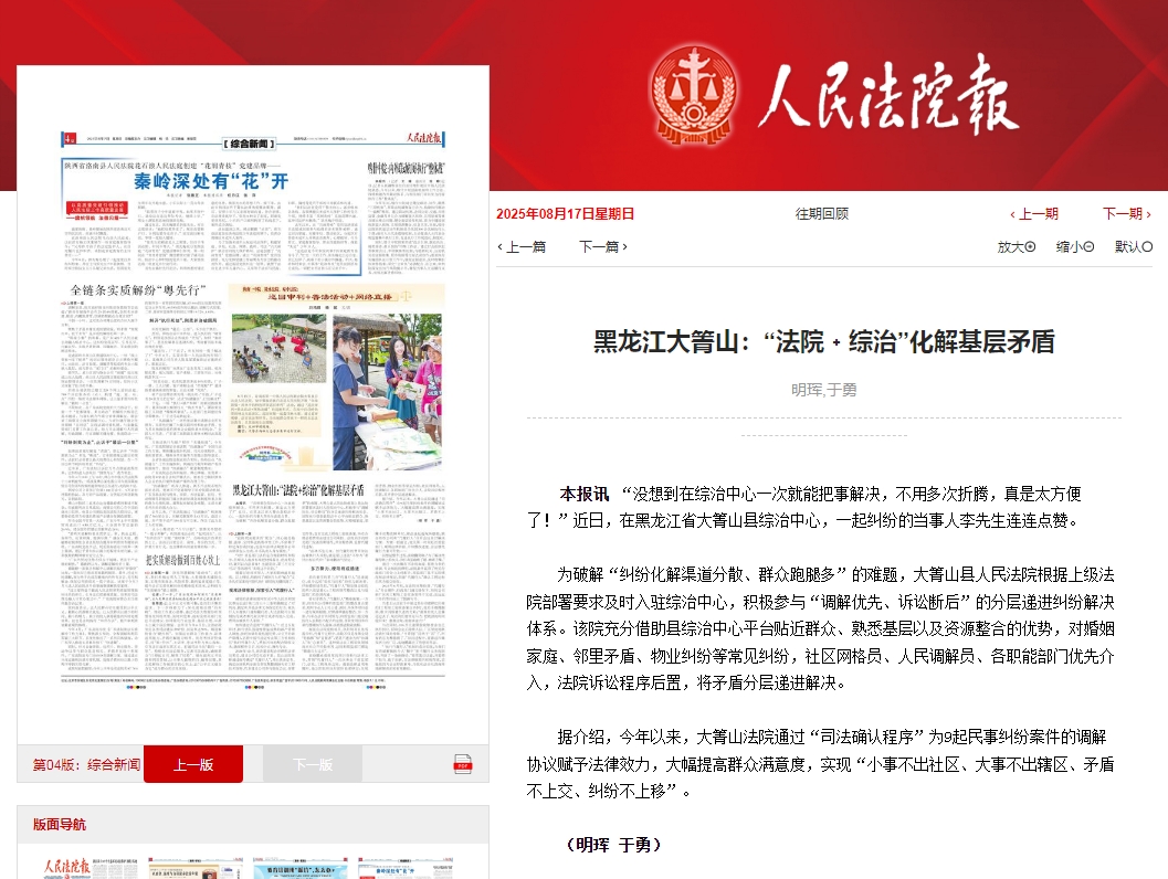 黑龙江大箐山:“法院﹢综治”化解基层矛盾
