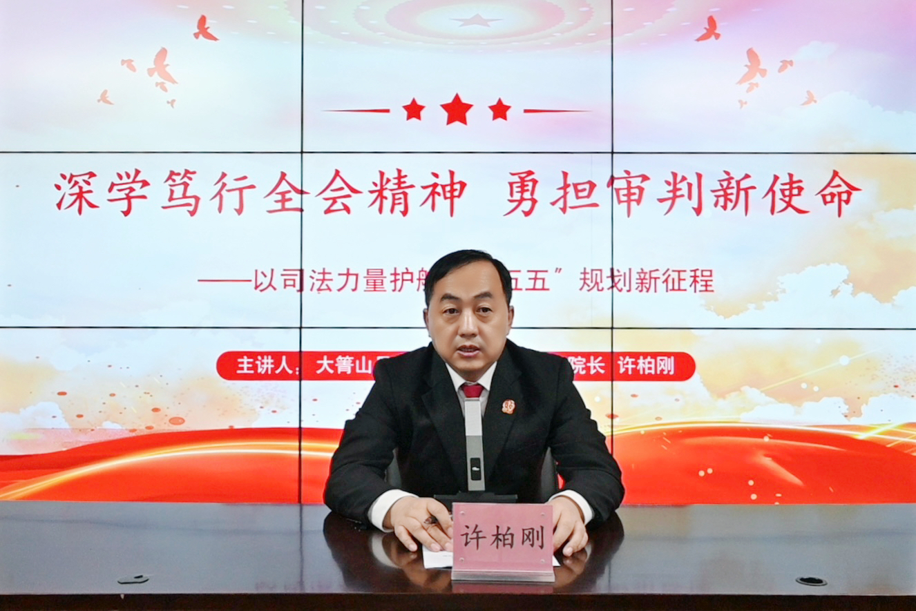 为深入学习贯彻党的二十届四中全会精神,引导全体干警切实把思想和行动统一到党中央决策部署上来。12月23日,大箐山县人民法院党组书记、院长许柏刚以《深学笃行全会精神 勇担审判新使命》为题作专题宣讲。