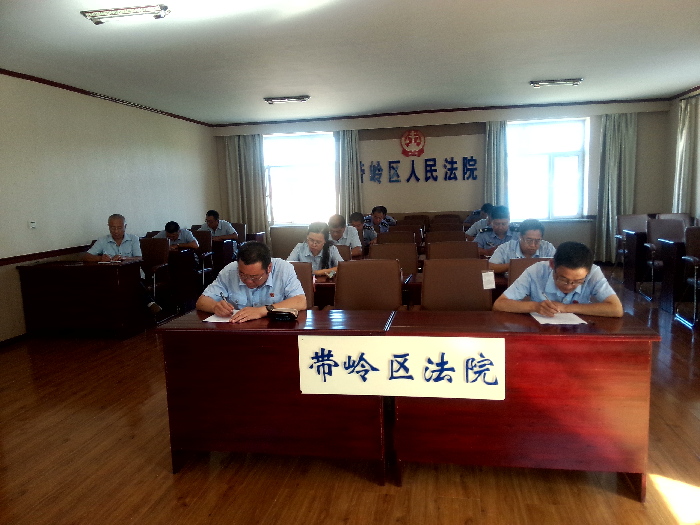 为促进“学习型”法院建设,全面提高干警的综合素质,带岭区人民法院年初在全院开展“一日一字一法条”学习活动。为检验学习效果,该院于8月14日“学习日”组织全体干警进行了集体测试。