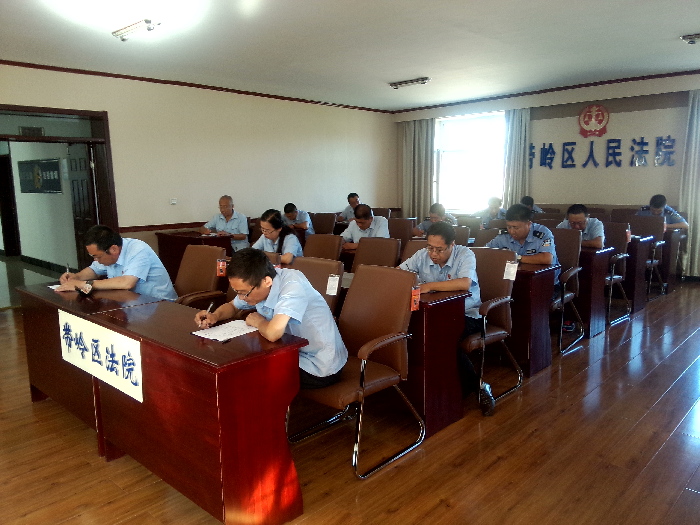 本次考试目的是以考检学、以考促学,考试内容从工作实际和审判实际出发,重点测试了公文写作基础知识、东北话应用和法律法规等相关内容。考试采取闭卷答题的形式,由院领导监考,全体参考人员认真作答,在规定时间内全部完成了答题任务。