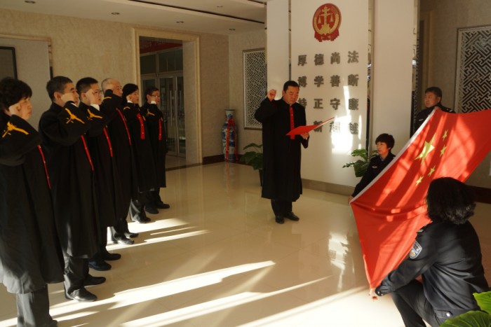 12月2日上午,入额法官身着法袍,面向国旗,右手握拳,进行了庄严的宣誓。“我宣誓:忠于中华人民共和国宪法,维护宪法权威,履行法定职责,忠于祖国,忠于人民,恪尽职守,廉洁奉公,接受人民监督,为建设富强、民主、文明、和谐的社会主义国家努力奋斗。”