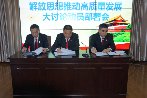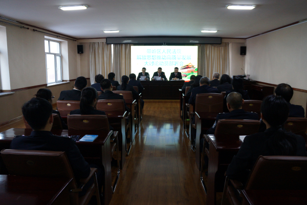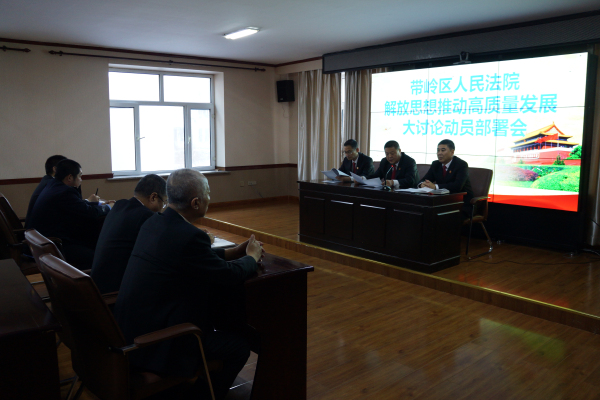 11月29日下午,带岭区人民法院召开解放思想推动高质量发展大讨论动员部署会议,党组书记、院长王连勇作了动员讲话,副院长王庶主持会议,全体干警参加会议。