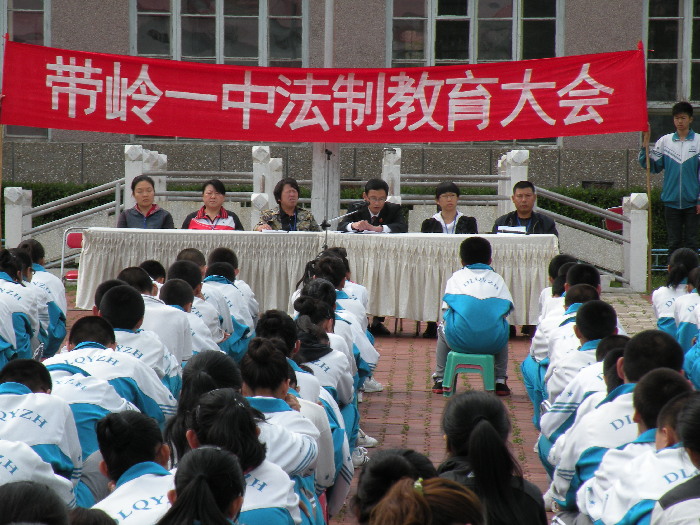 带岭区法院与带岭一中近期共同在学校操场开展了一次法制教育活动。会上民事庭庭长迟福志同志为第一中学师生进行法制辅导,全校师生现场接受法制教育。