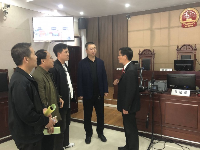 在科技审判法庭,工作人员详细介绍了如何通过庭审直播、裁判文书网络公开等方式广泛接受社会各界监督及审判工作阳光运行的过程和方法。