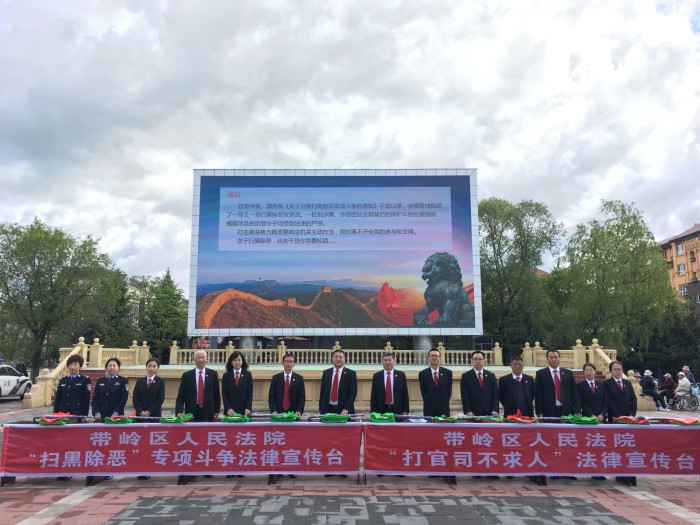 为进一步提高群众对扫黑除恶专项斗争的知晓率,鼓励和激发群众检举揭发黑恶犯罪线索的积极性,全面推进扫黑除恶专项斗争向纵深发展。按照市法院统一部署,5月31日上午,带岭区人民法院在辖区中心基荣广场开展了“重拳出击黑恶势力、法治护佑伊春”扫黑除恶专项斗争主题宣传活动。