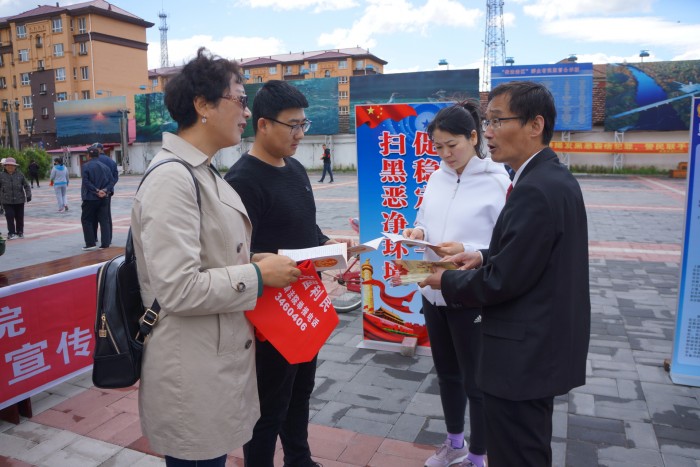 在活动现场,悬挂了扫黑除恶横幅宣传标语,设置了户外宣传展示版,广场大屏幕循环播放扫黑除恶专项斗争知识及“打官司不求人”PPT宣传片,向过往群众发放了扫黑除恶专项斗争明白卡和印有宣传内容的环保袋,部分区人大代表、政协委员和社区等单位工作人员参与了宣传活动。干警们热情地接受群众咨询,耐心回答他们提出的问题,用通俗易懂的语言讲解扫黑除恶相关法律知识,动员和鼓励群众检举揭发黑恶势力犯罪线索。
