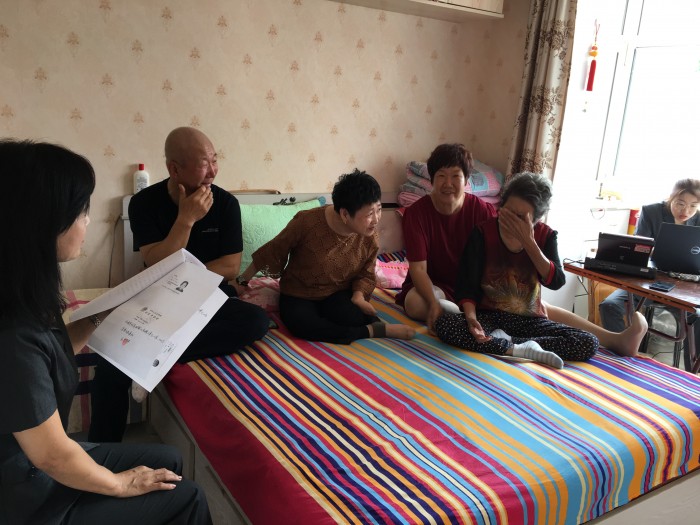 上述情景发生在案件当事人家里,原、被告为兄妹,因房屋继承问题诉至法院,而原告刘某某母亲有继承份额,应列为本案当事人,需要对刘某某母亲真实意愿进行确认。然而刘某某母亲年事已高,行动极为不便。王法官细致了解案情后,本着方便群众诉讼的理念,深入当事人家中开庭审理这起继承纠纷案件。