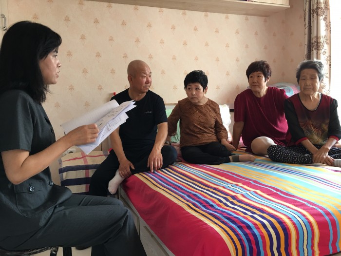 6月11日上午,王法官一行人来到原告刘某某家中,进一步了解案情,并与卧床的老人进行沟通交流,仔细询问老人的真实意愿。庭审中,在认真听取原、被告双方意见后,王法官按当事人意愿组织双方当事人进行调解,同时就案释法析理,经过调解,双方当事人最终达成了调解协议。