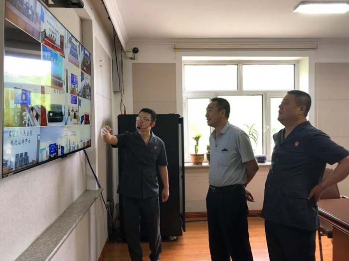 在讲解员的带领下,调研组参观了诉讼服务中心、科技审判法庭、执行指挥中心、审委会会议室、荣誉室等场所,直观感受带岭区人民法院的基础设施建设、工作氛围和干警风貌。
