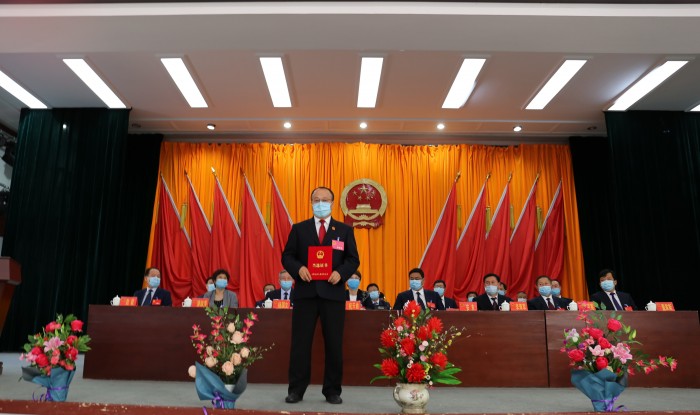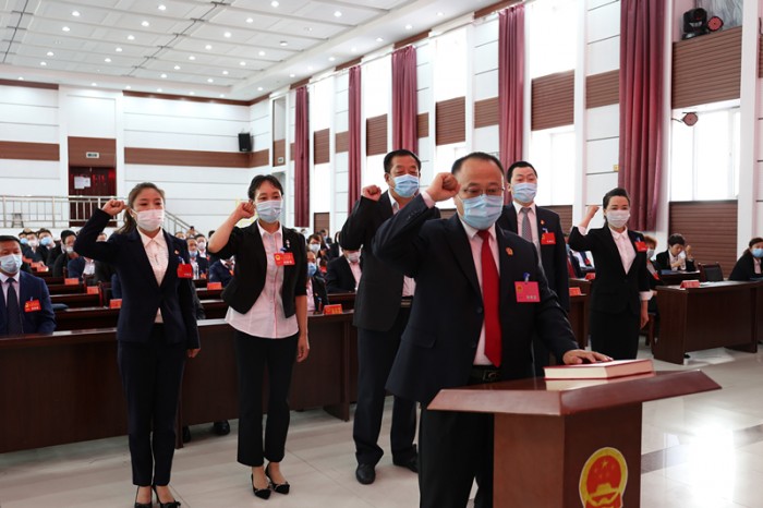 经大箐山县第一届人民代表大会第二次会议审议并表决,县法院报告全票通过,王玉刚同志在这次会议上全票当选大箐山县人民法院院长,并举行了宪法宣誓仪式。