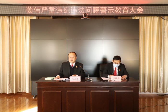为进一步加强党风廉政教育,以案为鉴提升干警廉洁自律意识。11月26日大箐山县人民法院召开党组(扩大)会议,专题传达学习市委政法委《关于姜伟严重违纪违法问题警示教育的通报》和《伊春中院关于印发<在全市法院开展姜伟案件警示教育工作方案>的通知》,并于同日召开全院干警会议,就姜伟严重违纪违法问题开展专题警示教育,确保将上级精神和要求传达到每一名干警。