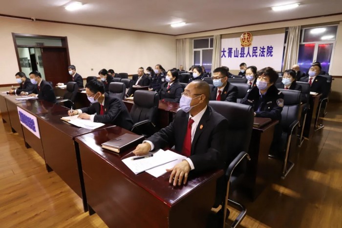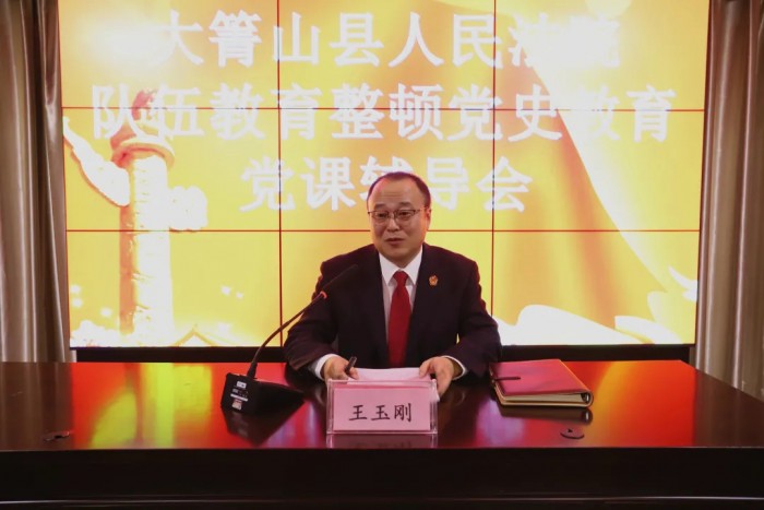 为进一步学习贯彻习近平总书记关于政法工作和政法队伍建设的重要指示,深入推进队伍教育整顿,2021年3月15日晚,大箐山县人民法院举办了专题党课辅导会。党组书记、院长王玉刚同志为全体干警上了一堂生动党课。