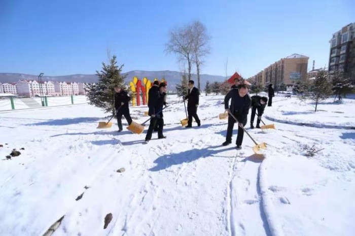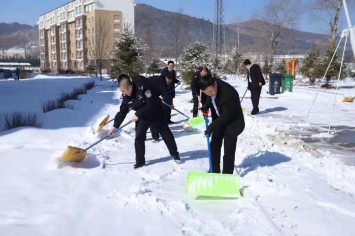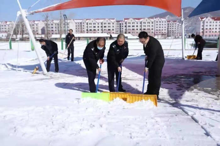 近日,连续降雪将大箐山县法治公园点缀得银妆素裹,但却给百姓出行和晨练带来了诸多的不便。县法院组织干警开展义务扫雪除冰工作,以实际行动落实司法便民服务理念,积极营造文明和谐的社会环境。