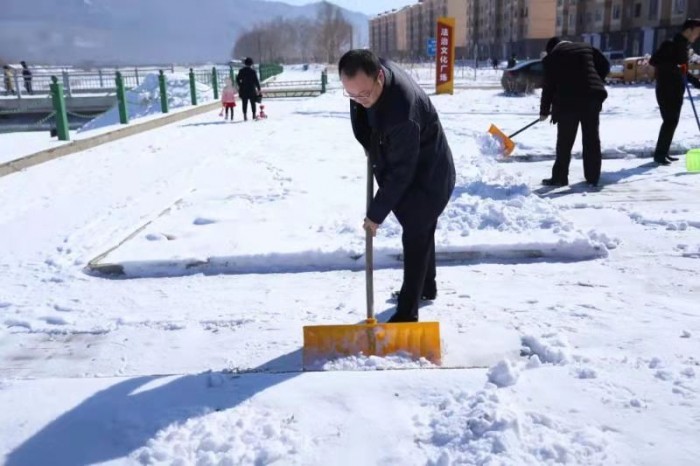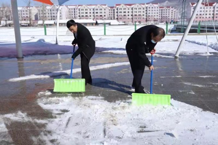 3月22日中午,干警们放弃休息时间,在党组书记、院长王玉刚的带领下来到县团结社区、法治公园扫雪除冰。清理积雪现场,干警们分工明确,有的负责用铁锹开辟出路、有的负责用扫把扫除残雪、有的用铲子铲除路面积冰,忙的不亦乐乎。经过1个多小时的清理,目标路段的积雪顺利清理完毕,来往的行人纷纷为法院干警点赞。