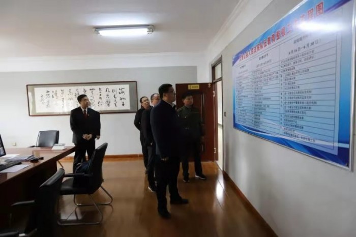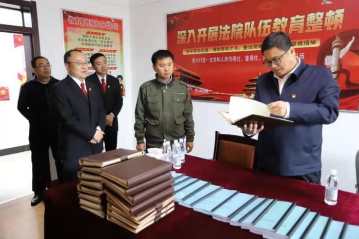5月8日上午,县委书记安东深入大箐山县人民法院检查指导队伍教育整顿工作,县委常委、政法委书记、县政法队伍教育整顿领导小组副组长刘岩,相关部门负责同志陪同检查。