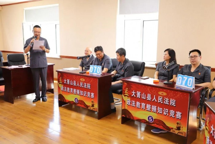 县法院班子成员分别带领各庭室、部门6支参赛代表队18名干警参加竞赛。竞赛分别设置了必答题、风险题和抢答题等环节,紧紧围绕开展政法队伍教育整顿的重要意义、“三大主题”“三个环节”“四项任务”等重点内容,涵盖党纪法规、党史学习教育等知识。