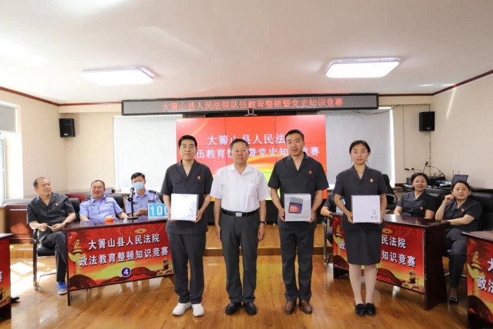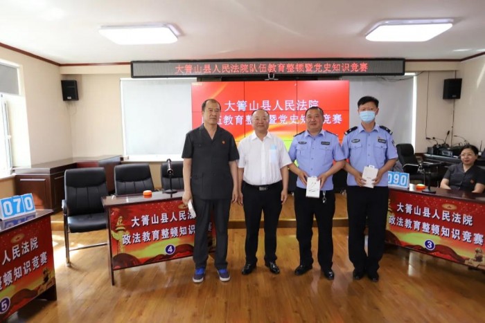 为深入推进党史学习教育和把学习贯穿于队伍教育整顿活动始终,切实将学习成果转化为思想动力和工作动力。在政法队伍教育整顿收官阶段,大箐山县人民法院于6月23日举办“政法队伍教育整顿暨党史学习教育”知识竞赛,县人大副主任徐可亮、县政协副主席王峰应邀来到竞赛现场观摩指导。