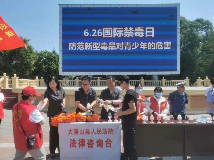 为进一步提高全民禁毒意识,增强青少年识毒、防毒、拒毒能力,促进全民参与禁毒,共同抵制毒品,积极营造健康的生活氛围。6月25日,在“国际禁毒日”到来前夕,按照县委的统一部署,大箐山县人民法院与其他相关单位共同在大箐山县基荣广场开展禁毒集中宣传活动。