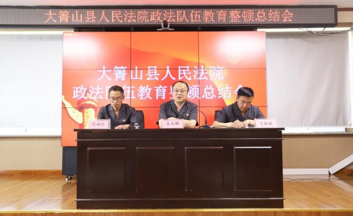 6月29日上午,大箐山县人民法院召开了队伍教育整顿总结会。会议传达学习了市委、市法院和县委政法队伍教育整顿工作总结会议精神,党组书记、院长王玉刚总结了县法院队伍教育整顿工作,并就持续推进和巩固队伍教育整顿成果进行了安排部署。