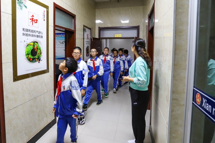 学生们在副院长迟福志的带领下先后参观了诉讼服务大厅、审判法庭、执行指挥中心、文化长廊、荣誉室等场所。