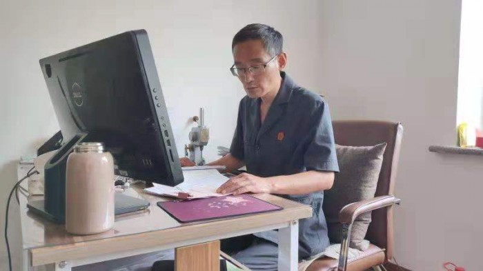 庭审结束后迟法官来不及休息,第一时间拨通了90岁当事人近亲属的电话,为把方便让给群众,迟法官决定到当事人家中开庭。来到当事人家中,通过交谈、分析两人矛盾所在,用他特有的耐心、热情和幽默,化解着当事人心中的坚冰壁垒,最终双方当事人以调解方式结案。回到单位已经中午12点了,一个紧张忙碌的上午就这样过去了。迟法官换下汗水浸湿的工装往家赶,有的同事们问迟法官,单位有食堂,在食堂吃一口得了,但迟福志却是微笑着说:“不了,回家吃完饭休息会。”后来通过对他同屋的同事了解才得知,迟法官从未在食堂吃过饭,原因是自己的父母都80多岁,且身体不好,中午回家需要给父母做饭,照顾父母。