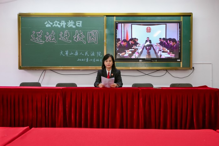 10月25日上午,大箐山县人民法院刑事审判庭王立新庭长走进大箐山县第一中学,送上视听盛宴《不忘初心,牢记使命-伊春市中级人民法院党建工作纪实》、《法官张淑霞》,把公众开放日和法制课“打包” 送进校园。