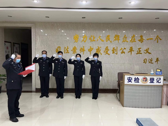 全体司法警以饱满的热情,高举右臂,紧握右拳,进行庄严宣誓。通过宣誓,全体司法警察牢记了职责,增强警察的神圣感、荣誉感和责任感,进一步强化子法律意识和廉洁为民理念,激励司法警察立足本职,辛勤工作。